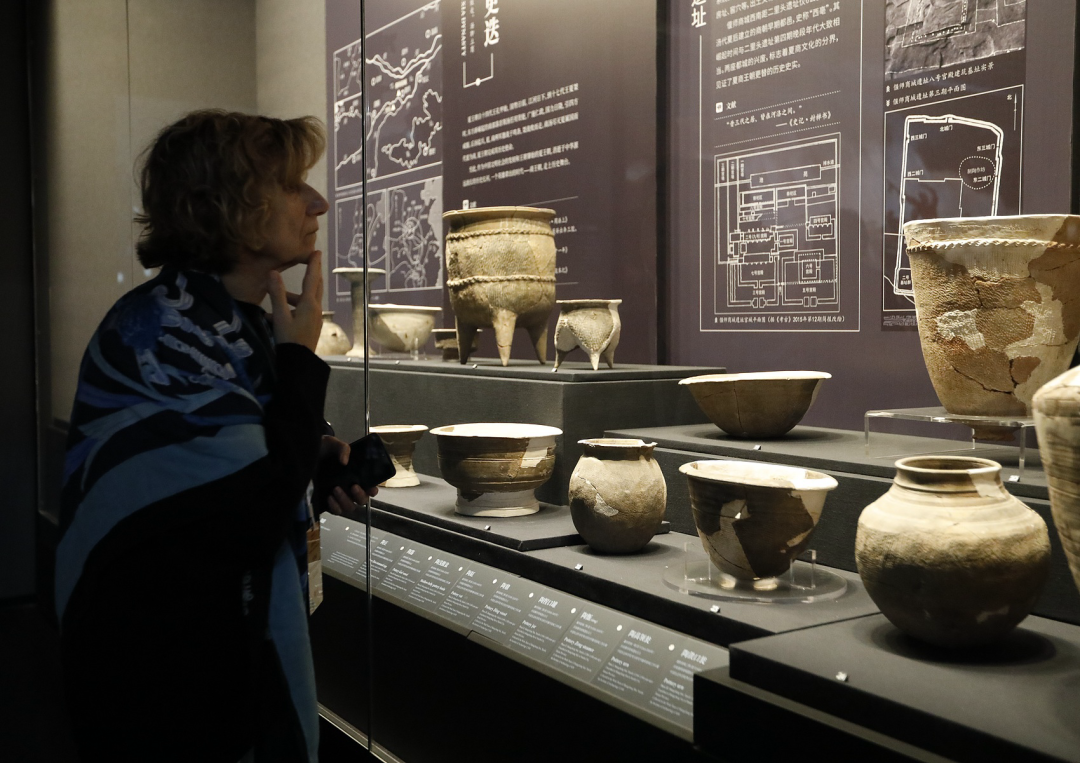 来自13个国家和地区的逾40位古典学专家学者探访二里头夏都遗址博物馆。(图/视觉中国)
