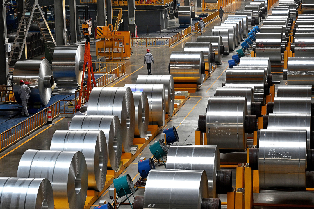 河南省洛阳市偃师区,轻合金材料企业加紧生产锂电池用铝合金箔材。(图/视觉中国)