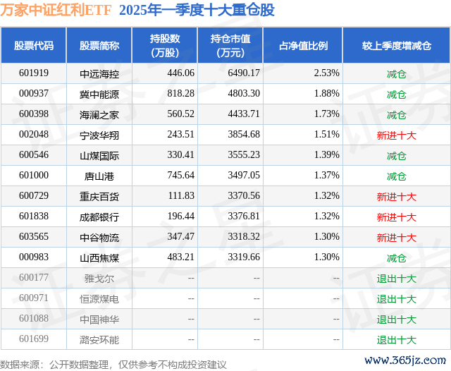 从基金规模来看中国星配资,万家中证红利ETF基金2025年一季度公布的基金规模为25.61亿元,较上一期规模28.55亿元变化了-2.94亿元,环比变化了-10.29%。该基金最新一期资产配置为:股票占净值比99.17%,无债券类资产,现金占净值比0.99%。从基金持仓来看,该基金当季前十大股票仓位达15.65%,第一大重仓股为中远海控(601919),持仓占比为2.53%。