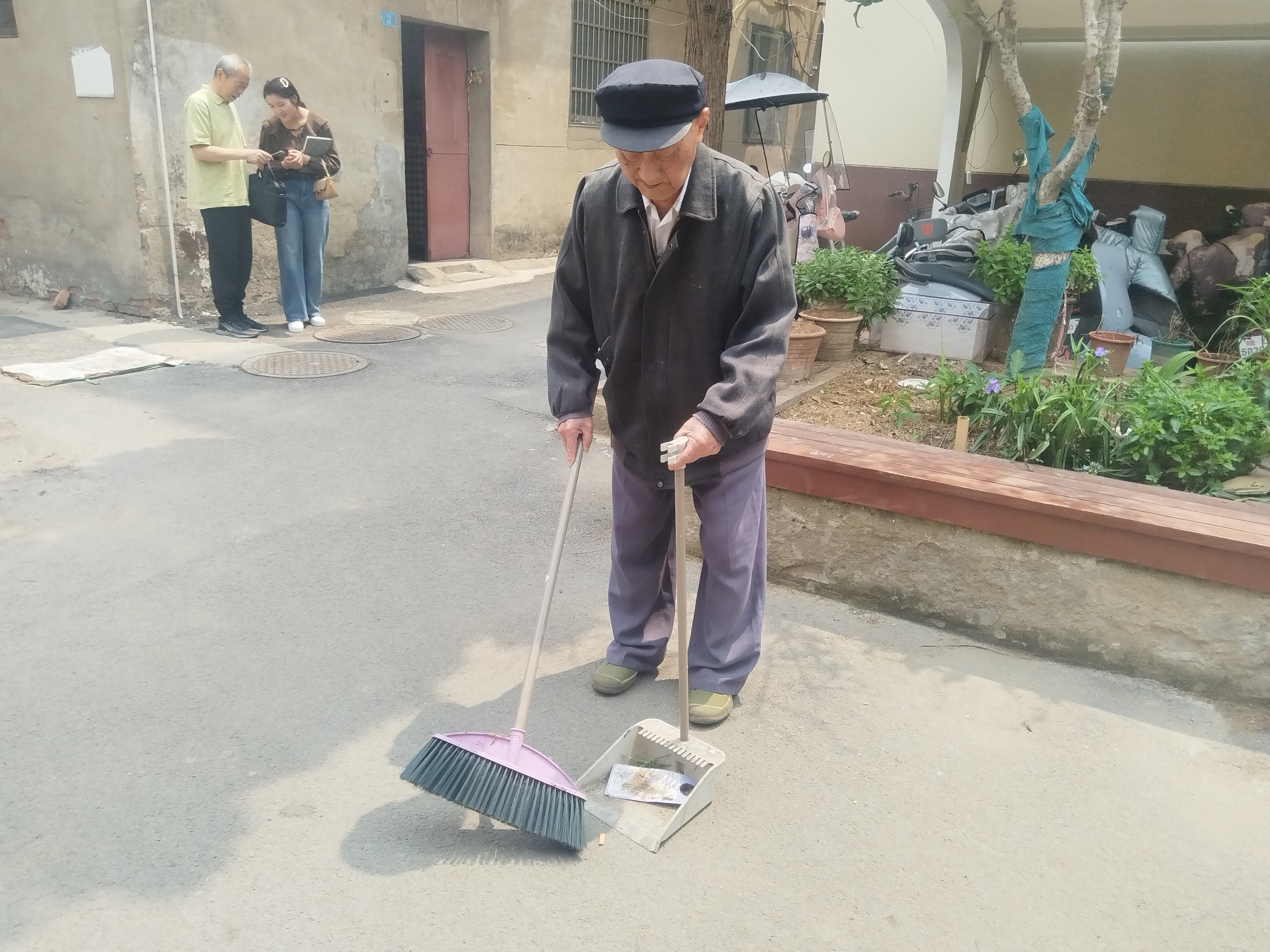 如今99岁的他,除了不能做饭,生活基本能够自理,每天至少下楼两次。平日里,他还喜欢打扫门口公共区域的卫生,步履间满是对生活的热爱。